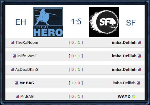 Сегодня была важная игра для нас. Победа была важна как соперникам так и нам. К игре мы подошли почти тем составом, которым играем всегда, новеньким был лишь WmF, который мог повторить свой вчерашний успех, но не смог и уступил 1:2