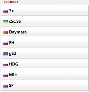 Вчера, нашим поражением в квалификации с командой Daymare0-4, мы закончили свои отборочные дивизион alone. Не смотря на наше поражение, мы попали сразу в DIVISION 1!!! В котором собрались очень и очень сильные команды: