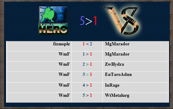 Прошел дружеский КВ с командой WTeam, лично для меня результат оказался неожиданным, WmF выступил превосходно оставив за собой всех поверженых игроков соперника. Что это было не знаю, но если так и дальше пойдет, то при любых клан варах место в составе на игру у этого парня будет неоспаримо! Так же стоит отметить и наш дуэт стримеров Random & KinG, которые в своей манере прокоментили все матчи, было интересно )